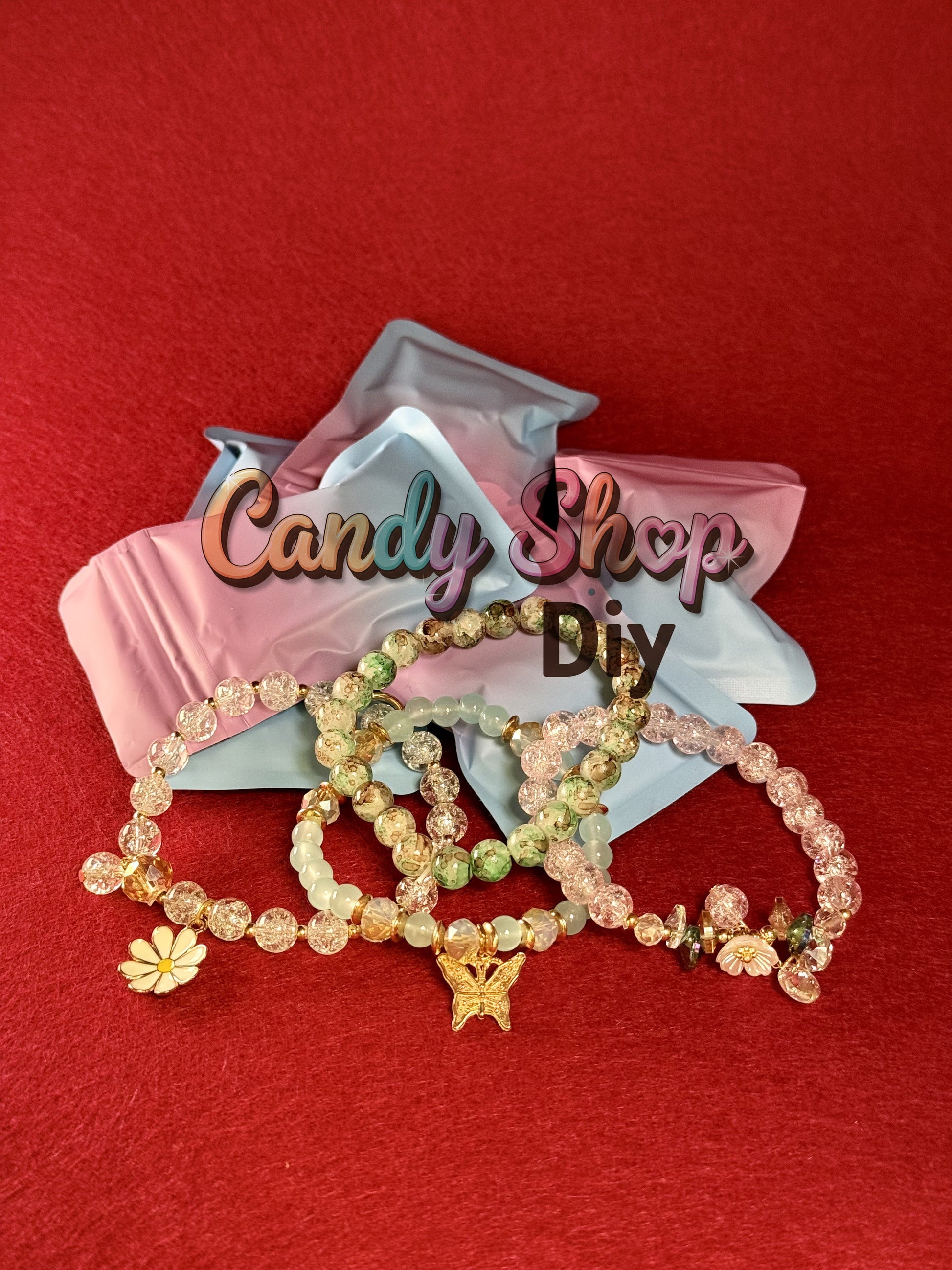 Pulseras de cuentas acrílicas variadas con piececitas de la suerte
